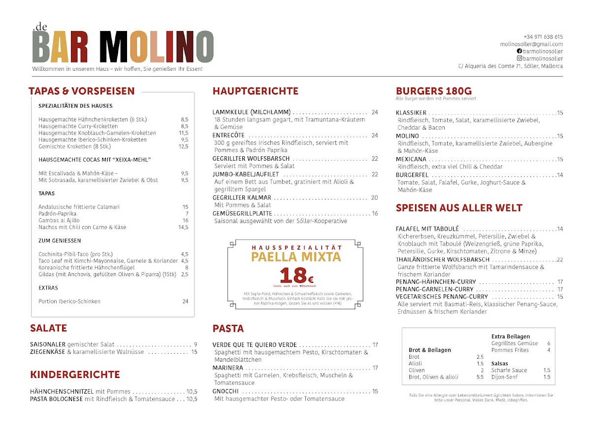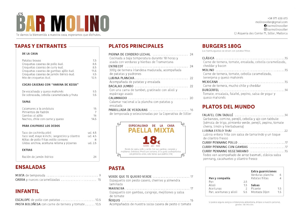 Welcome to Bar Molino Soller, a hidden gem located in the picturesque town of Soller, Mallorca. Tucked away on Carrer de l'Alqueria del Comte, this cozy eatery promises an unforgettable dining experience, renowned for its heartwarming dishes made with love.