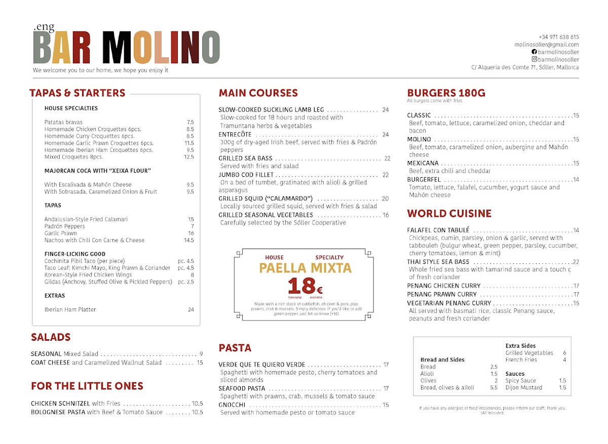 Discover the warmth and culinary delights of Bar Molino Soller for an exceptional meal that feels like home.
